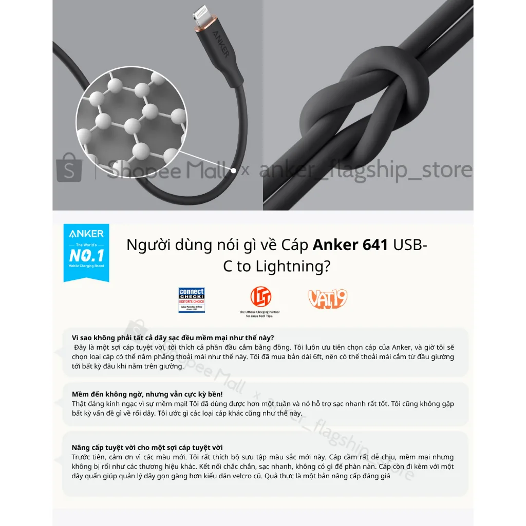 Đánh giá Cáp Sạc Nhanh Anker 641 PowerLine III Flow | USB-C to Lightning | PD 20W | Dài 0.9m | Siêu Mềm & Bền