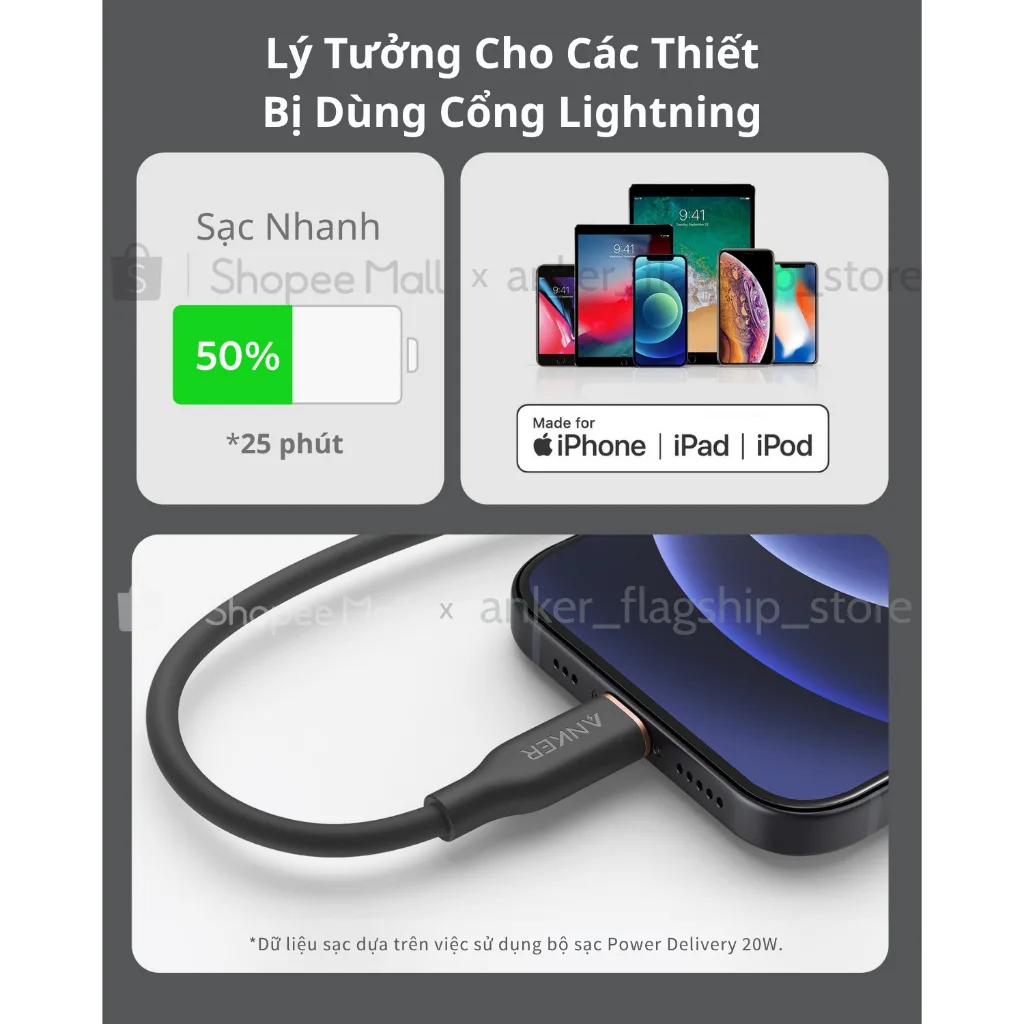 ⚡Sẵn sàng sạc nhanh: Tương thích với sạc nhanh Power Delivery để sạc iPhone, iPad hoặc bất kỳ thiết bị Light–ning nào khác của bạn ở tốc độ tối đa có thể.